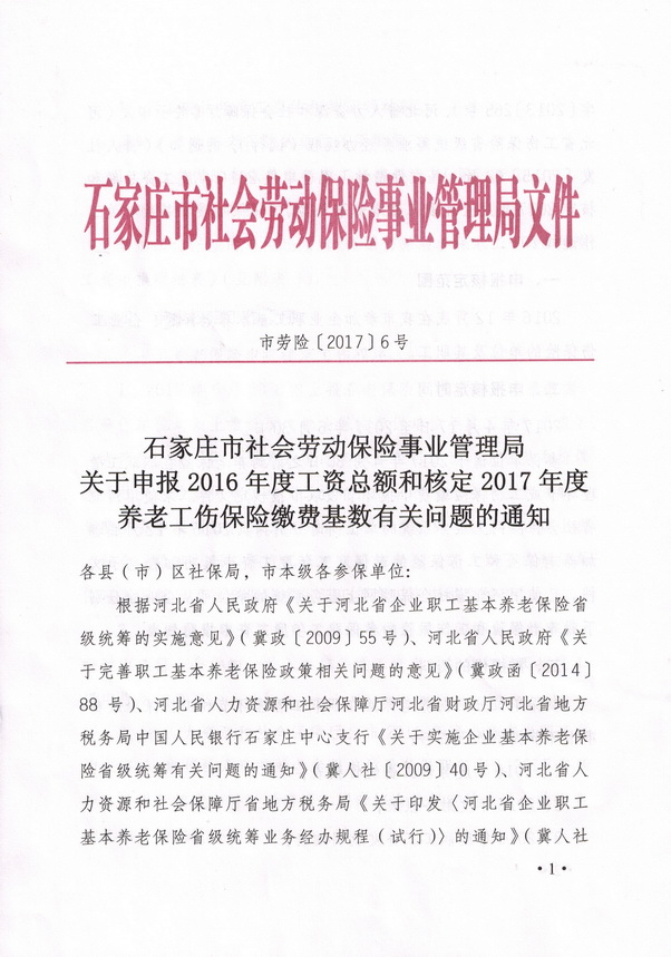 关于申报2016年度工资总额和核定2017年度养老工伤保险缴费基数有关问题的通知